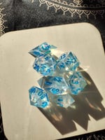 The rainbow dances within these dice, creating a stunning look to these dice.