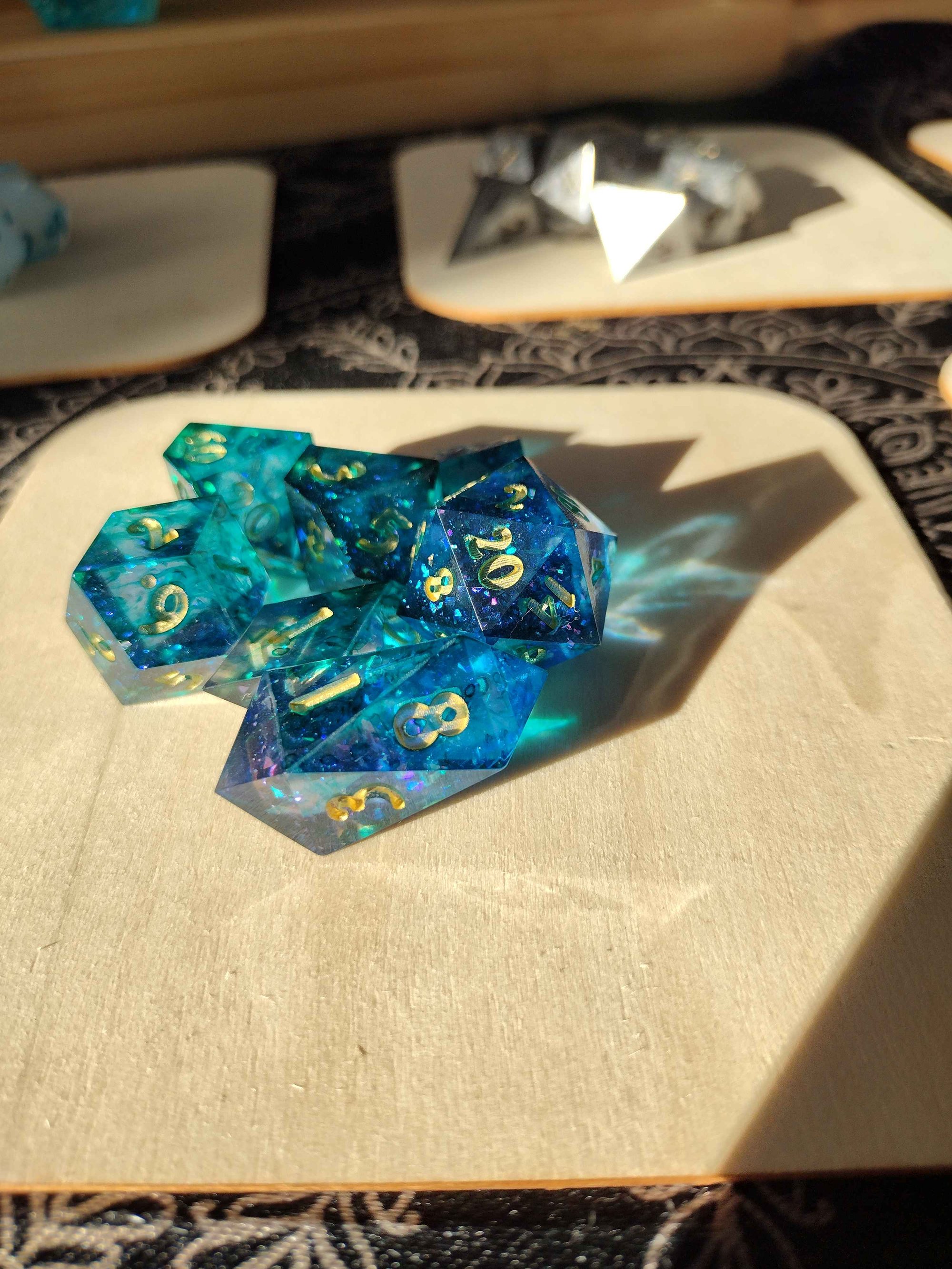 The look of ripples rolling out from the point of connection with water, the way the water reflects light when it happens. That's what we were trying to capture within these dice.